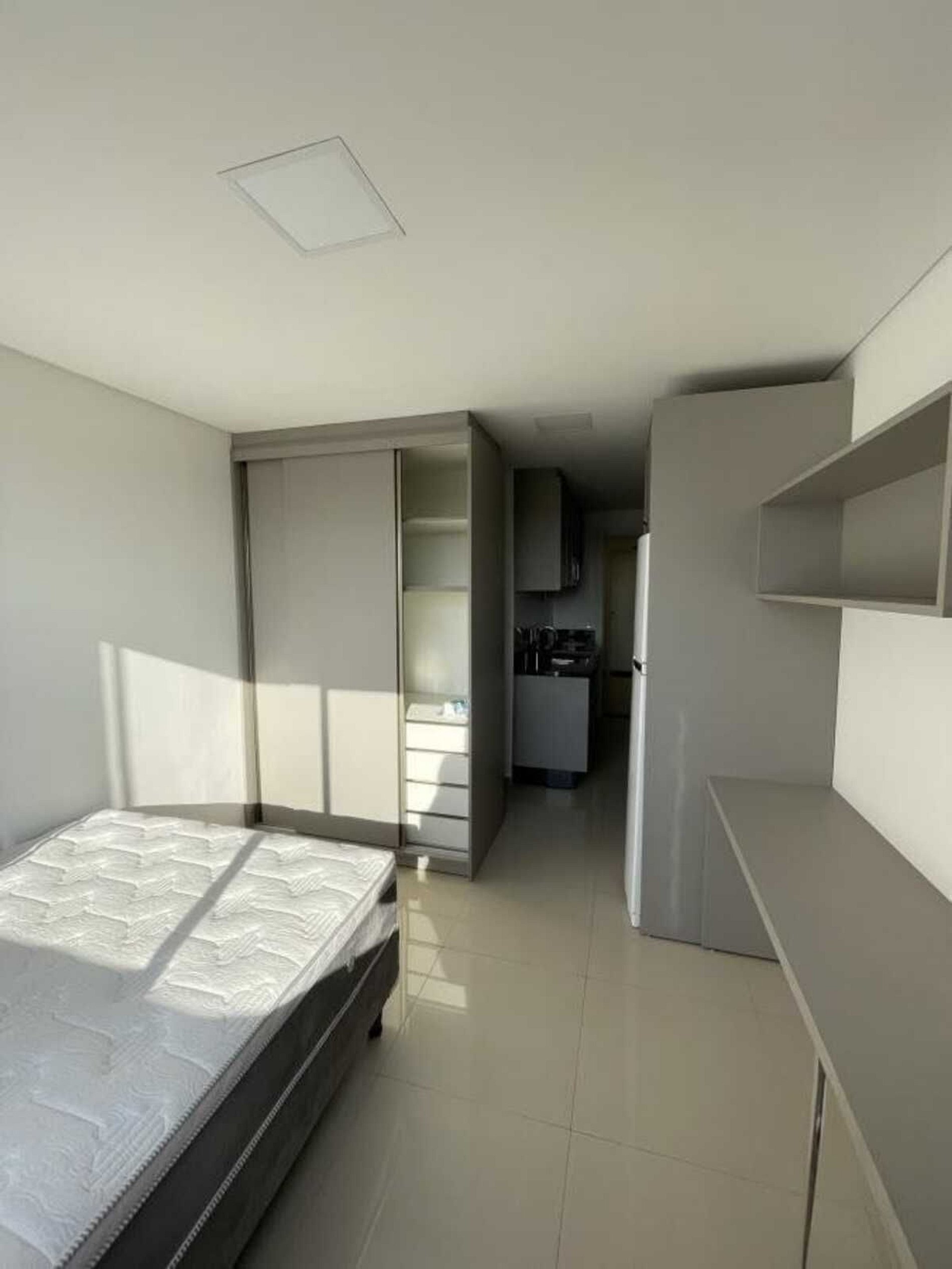 - Com todos os ambientes integrados, cozinha com cooktop elétrico, geladeira e micro-ondas, quarto com armários, bancada, cama, tv smart e banheiro, com todos os móveis planejados e incluso eletrodomésticos.
