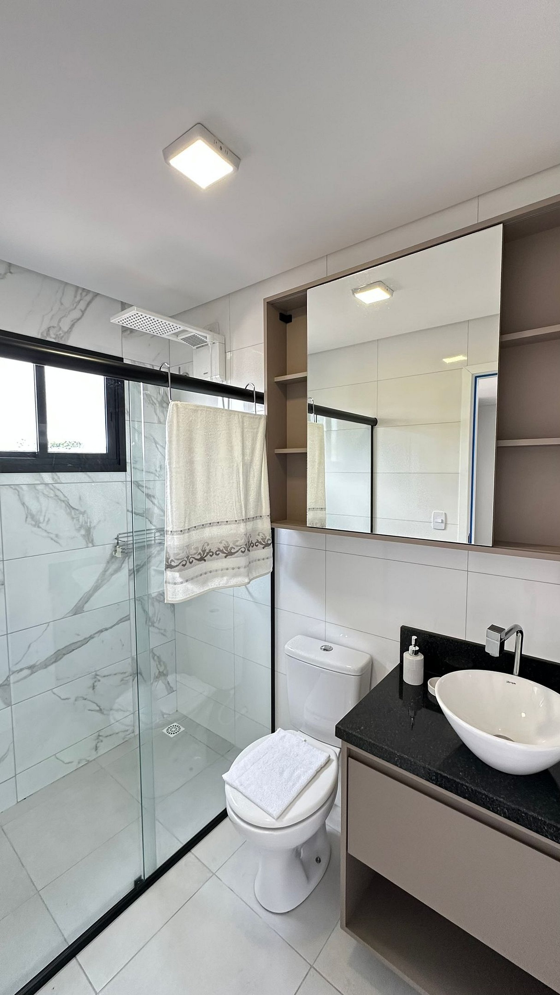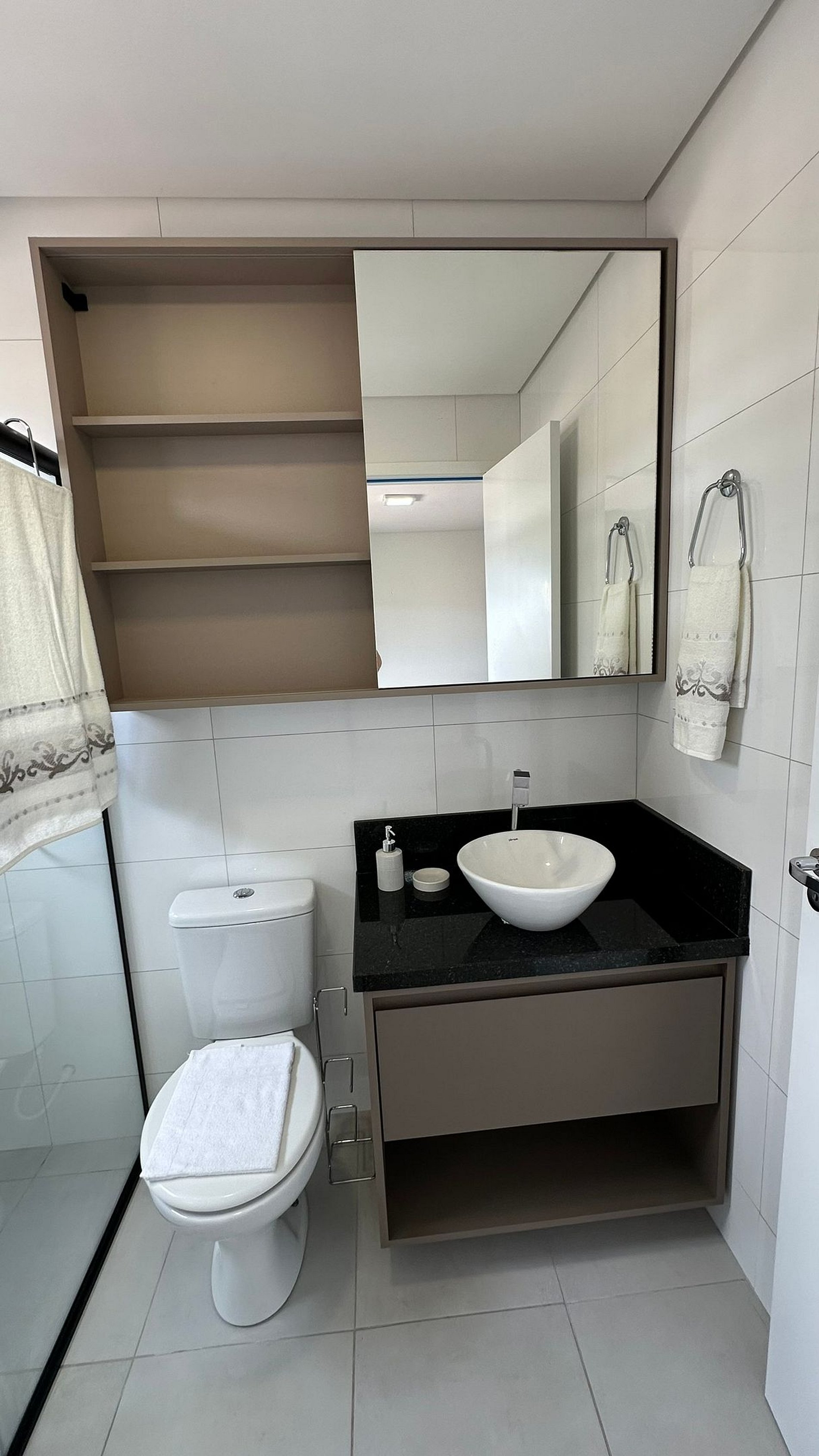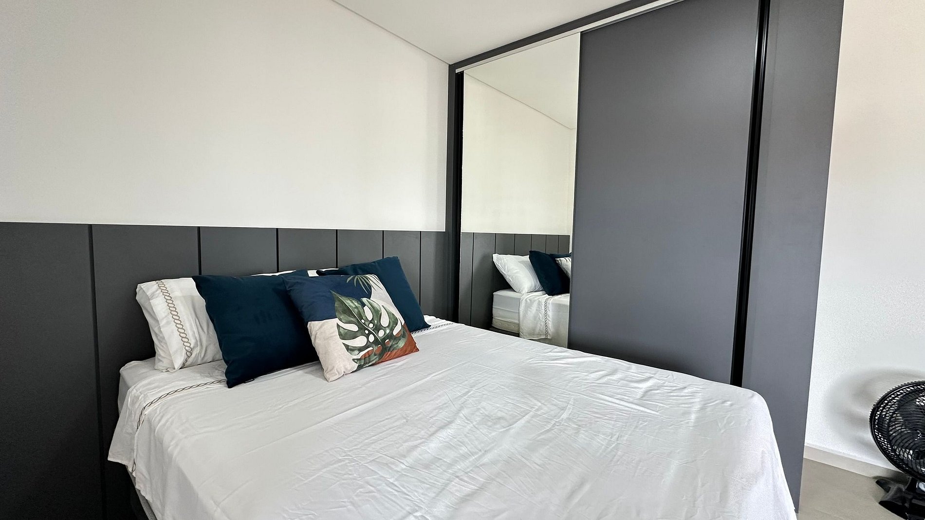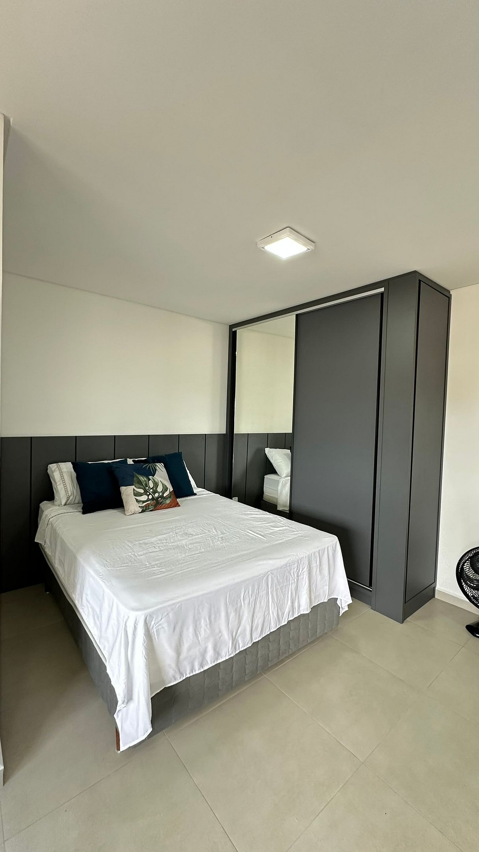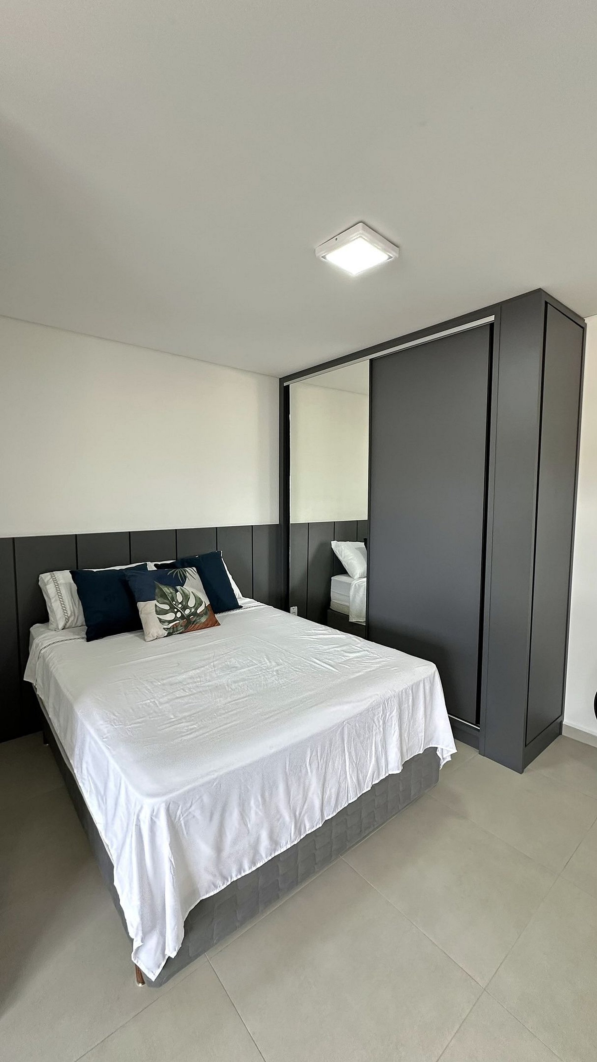 Nosso espaço conta com tudo que o hóspede precisa para uma estadia confortável. Apartamento possui cozinha 100% completa (não possuímos forno), com todos utensílios básicos para a preparação de uma refeição, mesa com quatro cadeiras, geladeira 2 portas, cooktop, micro-ondas e máquina lava e seca, espaço do quarto com cama box de casal e guarda-roupas, painel com TV Smart, banheiro com chuveiro elétrico.