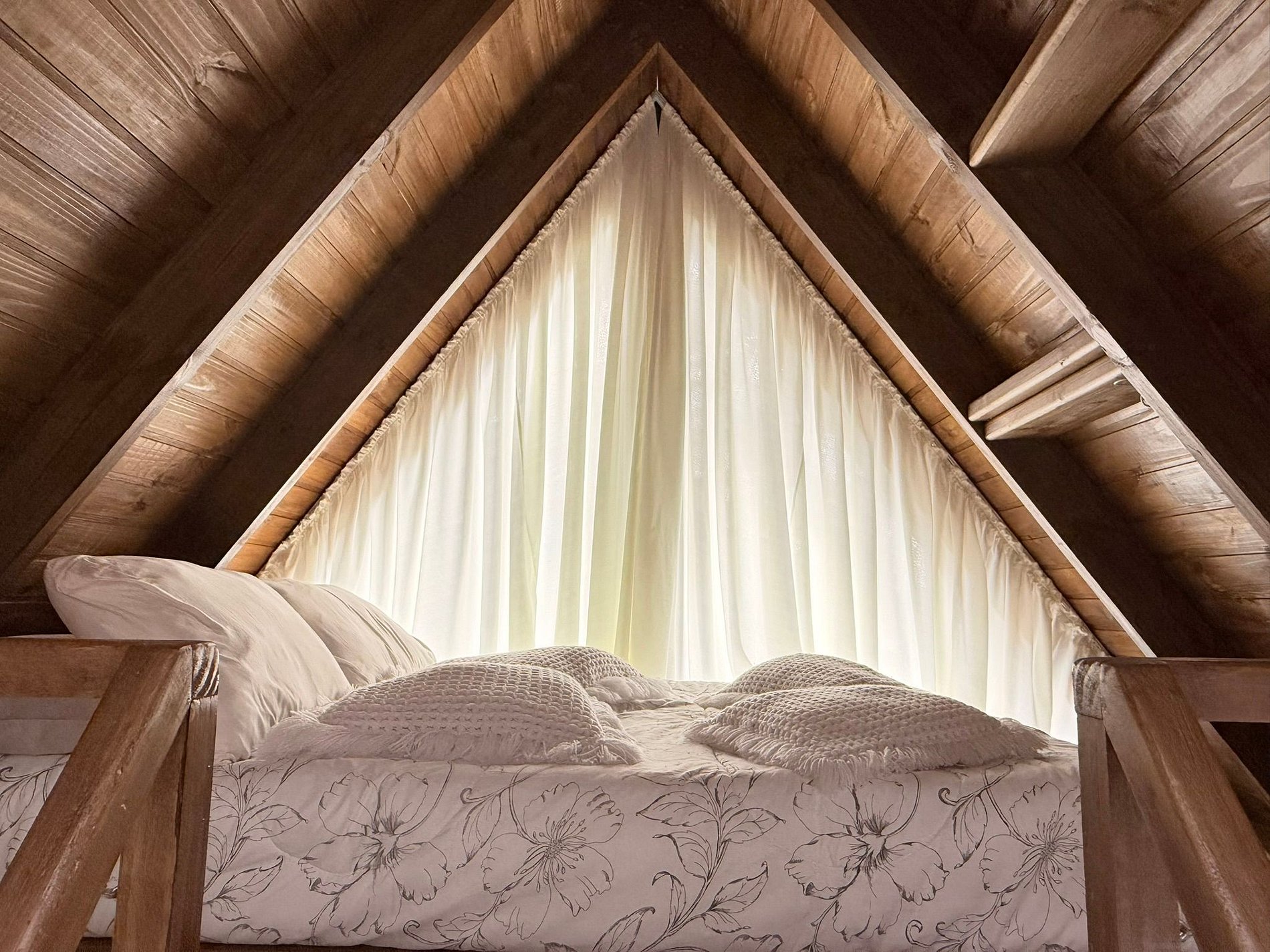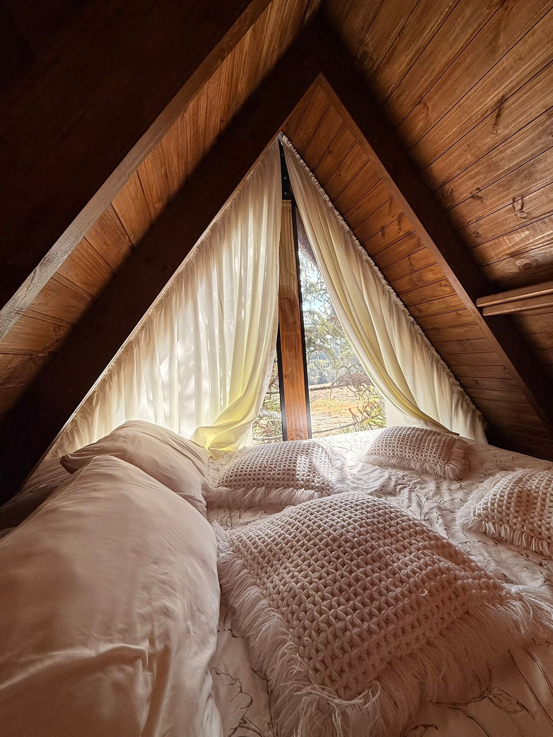 Mezanino com cama perfeito para contemplar a natureza.