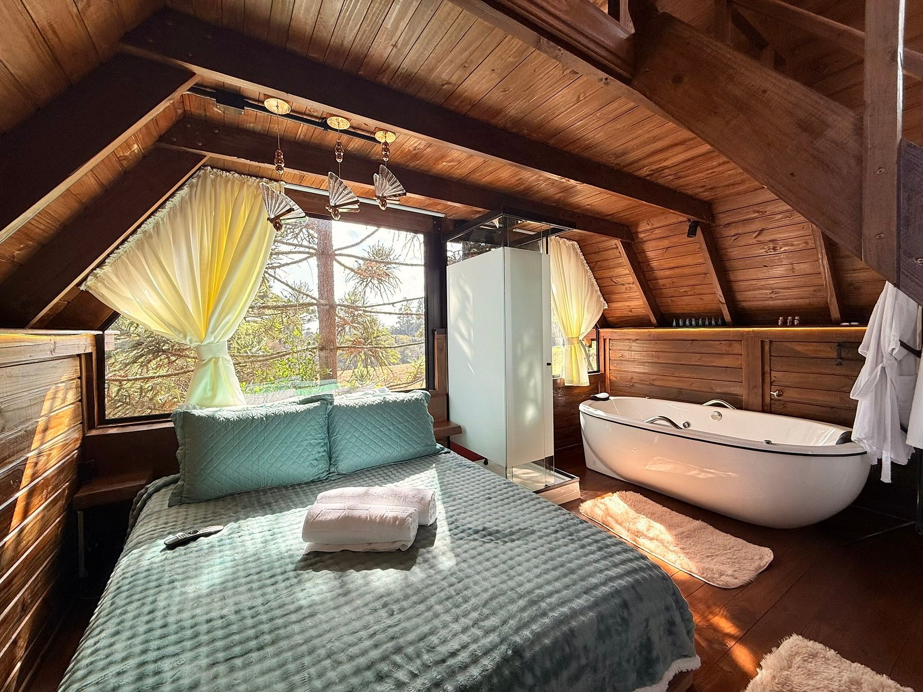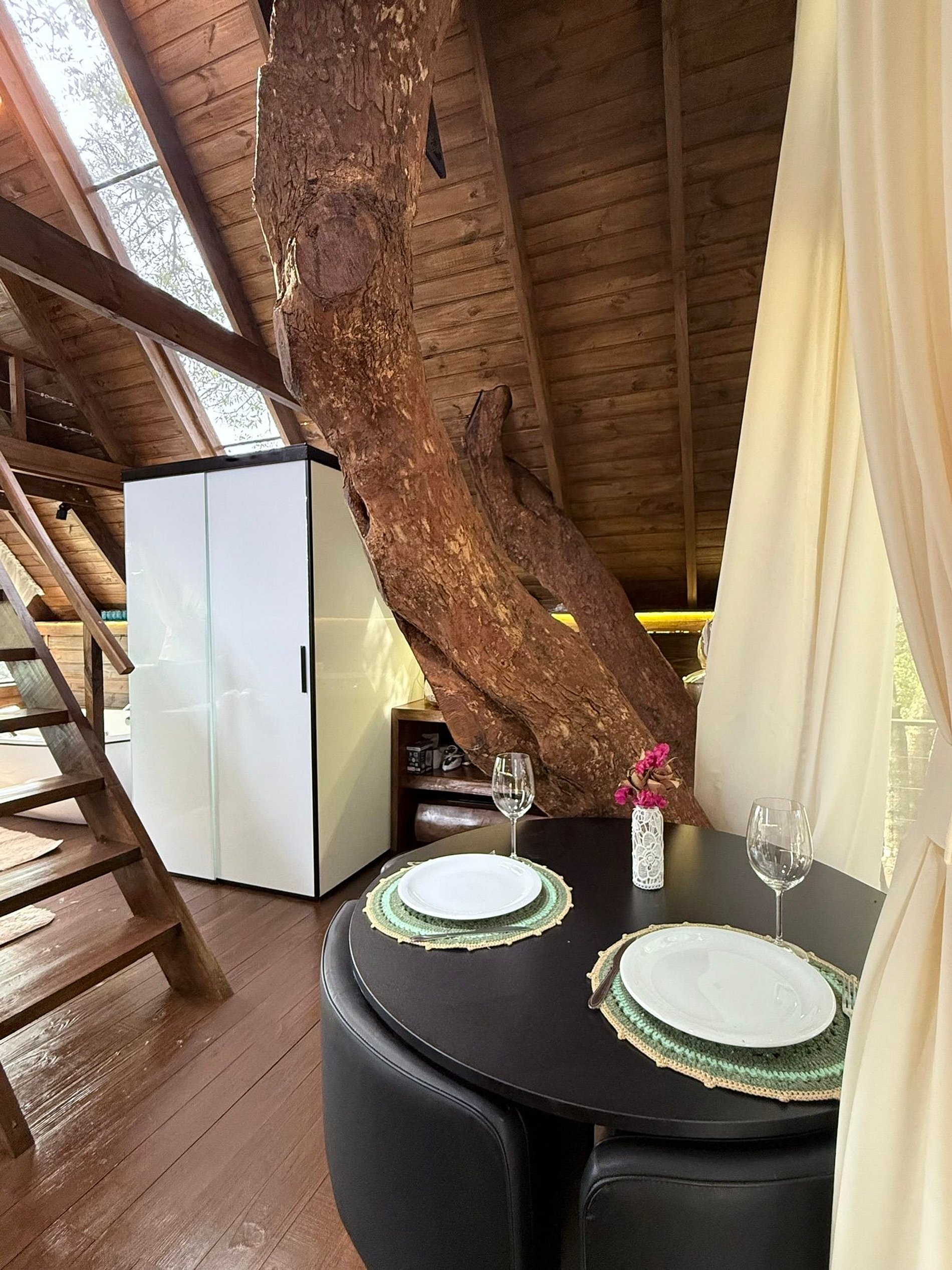 Viva uma experiência única em nossa casa na árvore, onde cada detalhe foi pensado para unir aconchego, charme e contato direto com a natureza, com banheira de hidromassagem, cozinha completa, mezanino com vista e telhado de vidro para ver as estrelas.