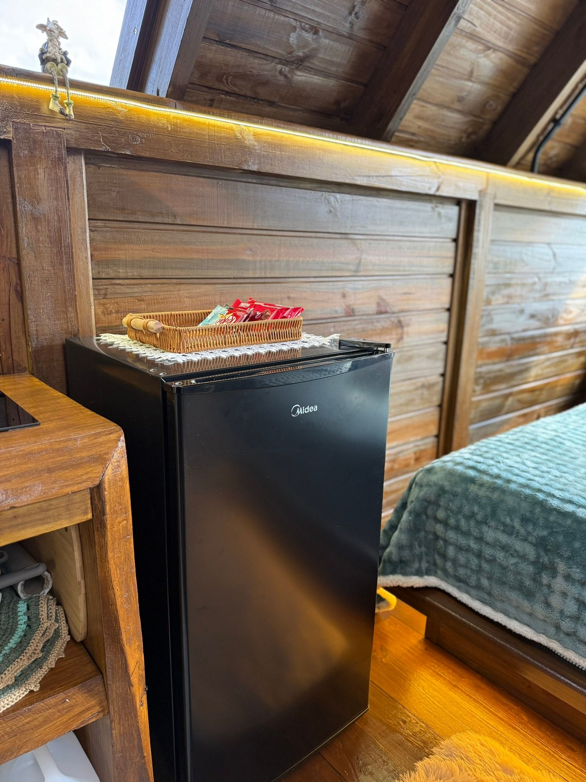 Parte do telhado em vidro, permitindo admirar o céu e as estrelas direto da cama.
